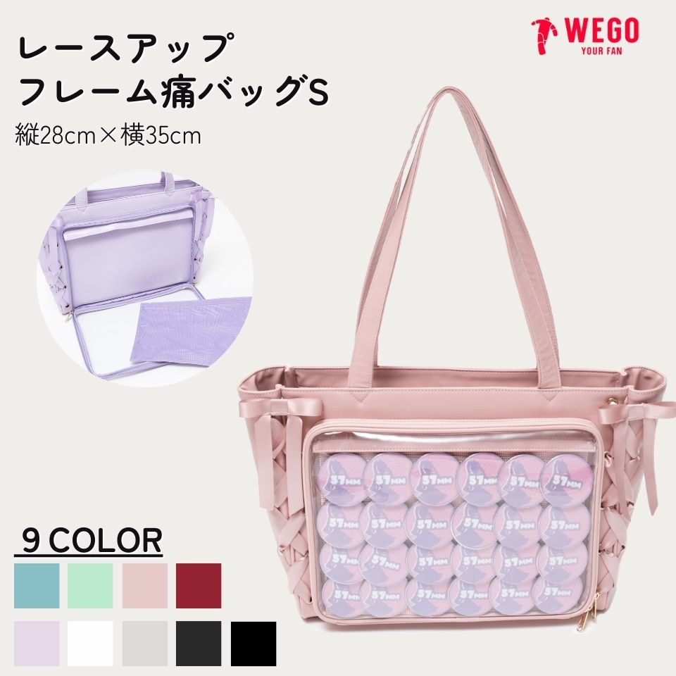 23冬新作 レースアップフレーム痛バッグS 痛バ 痛バッグ 軽量 トートバッグ レディース Sサイズ ポーチ缶付き 缶バッジ アクスタ アクリルスタンド 推し活グッズ 推し事 WEGO ウィゴー【一部店舗限定】
