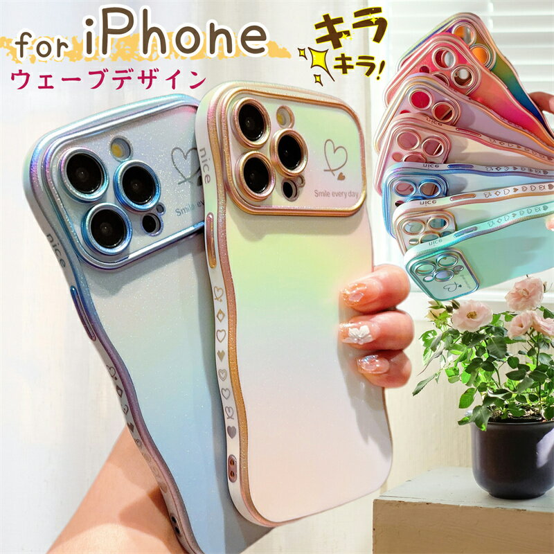 多彩! うねうねケース iPhone16e iPhone15 iPhone13 iPhone17 ケース キラキラ オーロラカラー 韓国 スマホケース ウェーブ iPhoneケース アイフォン アイホン Air 17 16 15 14 Plus 13 12 11 Pro Max なみなみ おしゃれ スマホカバー レディース カメラ 保護 レンズカバー