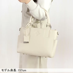 ハンドバッグとショルダーバッグの2通り(2WAY)で使え、長財布や500mlペットボトルが収まる高い機能性が特徴。
