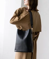 VitaFelice(ヴィータフェリーチェ)の「ワンハンドル2way縦型トートバッグ」は、角シボ加工のハリのあるフェイクレザーを使用した、上品でスタイリッシュな縦型トートです。