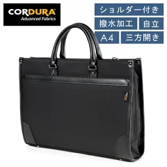 取り外し可能なショルダーベルトが付属し、自立可能な底鋲付き。軽量で機能性に優れ、ビジネスのスタンダードとして使いやすいアイテムです。