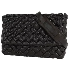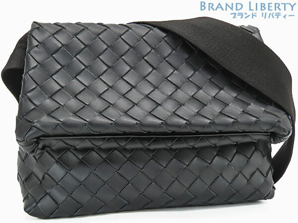 BOTTEGA VENETA ボッテガ ヴェネタ ボッテガベネタ イントレチャート ショルダーバッグ メッセンジャーバッグ 斜め掛け レザー ブラック 黒 163971 【中古】
