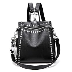 レディースリュック カジュアルショルダーバッグ個性多用途リベットレディース多機能トラベルバッグ 女性の革バックパック (色 : Black, Size : 23x12x24cm)
