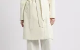 - 洗練されたミドル丈: ジャケットの裾が隠れる程度のハーフコート丈で、スーツの上からでも羽織りやすい。