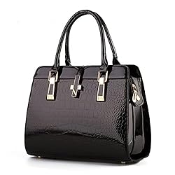[ SSRBWJR ] ショルダーバッグ エナメル クロコダイル柄 トートバッグ レディース ハンドバッグ スクエア 肩掛けバッグ 手提げ 大容量収納 a4 耐磨耗 フェミニン 大人 鞄 スタイリッシュ 出張 演奏会 誕生日 プレゼント 大容量 スパンコール ワンショルダー メッセンジャーバッグ ブラック