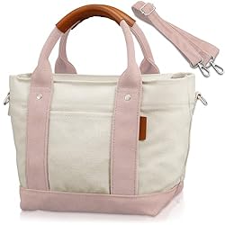 [アンコール] ミニトートバッグ 仕切り 【高見え革巻きハンドル】 キャンバス トートバッグ レディース メンズ 2WAY 自立 軽量 小さめ ファスナー 帆布 ショルダーバッグ (ピンク, Lサイズ)