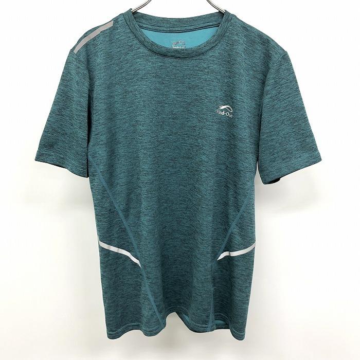 【中古】Find-Out ファインドアウト S メンズ スポーツシャツ Tシャツ 一部リフレクタープリント ロゴプリント 丸首 半袖 ポリ100% ヘザーグリーン