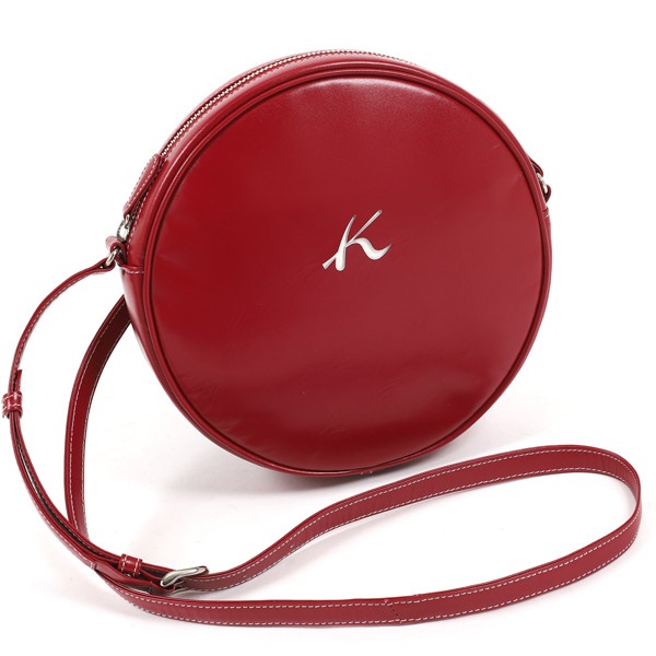 Kマークの刻印や刺しゅうがワンポイントで、牛革の滑らかな質感や、軽量なポリエステル素材を用いたモデルなどがあります。