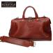 ボストンバッグ メンズ 本革 光沢 鞣しレザー トラベルバッグ 大容量 男女兼用 機内持ち込み コルフバッグ 底鋲付き 旅行バッグ ラウンドファスナー 赤 50cm