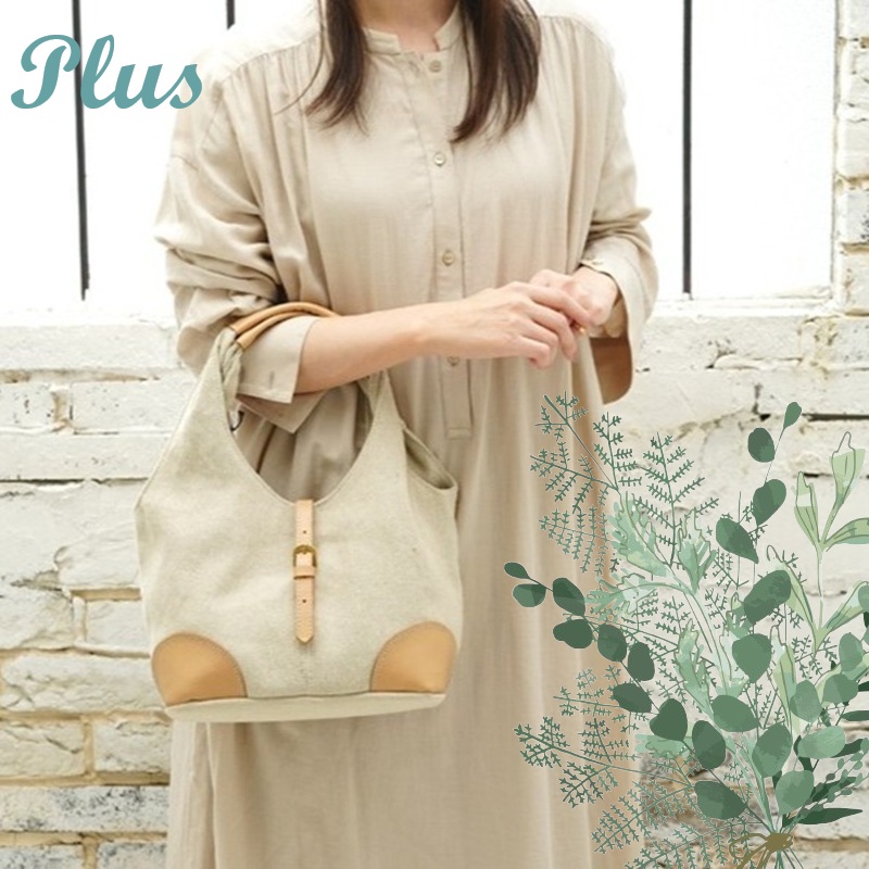 • 素材とデザイン: 麻混のナチュラルな風合いの生地を使用し、ポイントに本革を採用することで上品さを演出。