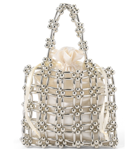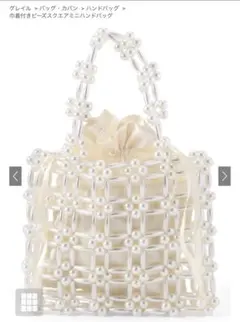 巾着付きビーズスクエアミニハンドバッグ[ac2577] アイボリー