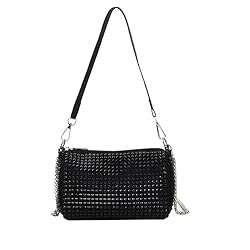 HDNSAUD ラインストーンバッグ ミニラインストーン スクエアバッグ メタル ダブルチェーン ショルダーバッグ スパークリング パーティーバッグ ダイヤモンド コインパース (ブラック-01)