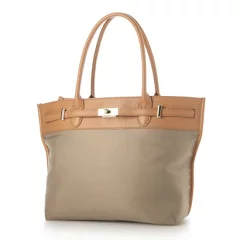 <ロングセラー>【テレビドラマ着用アイテム】ペルケpercheナイロン牛革ヒネリ金具トートバッグ(BE)