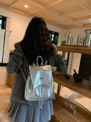 デューリリー Dewlily フェイクレザーリュック レディース 10代 20代 30代 韓国ファッション カジュアル おしゃれ バッグ バック 鞄 大容量 リュックサック 黒 白 (シルバー)